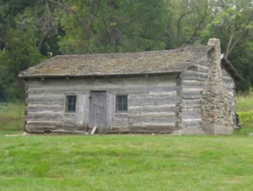 Home of early settlers, nestled within a clearing in Hole-in-the-Mountain Regional Park.